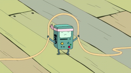 BMO from Adventure Time performs an energetic jump rope workout, showcasing its athletic side.