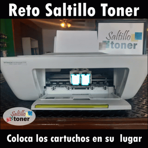 A printer with Saltillo Toner cartridges, part of the 'Reto Saltillo Toner' challenge.