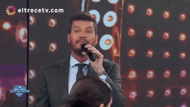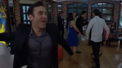 Two men from La Rosa De Guadalupe greet and hug warmly in a living room scene.