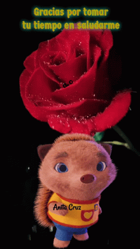 Anita Cruz, a cute animated character, thanks you for your time with a beautiful red rose.
