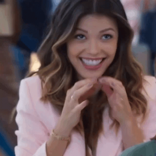 Vitoria Strada from Salve Se Quem Puder smiles mischievously, wearing a pink jacket.