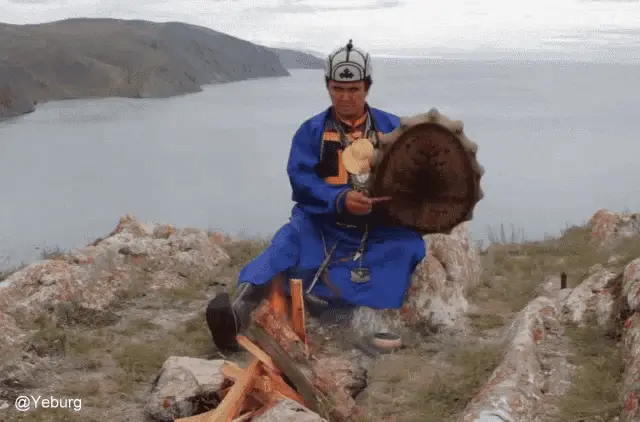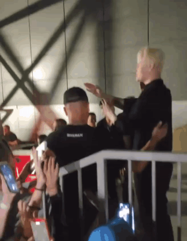 A person identified as 'Шаман' (Shaman) performs a 'зига' (Nazi salute) gesture at an event.