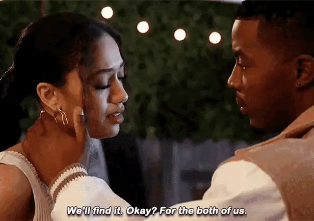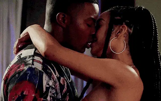 Samantha Logan as Olivia Baker and Daniel Ezra as Spencer James share a passionate kiss.