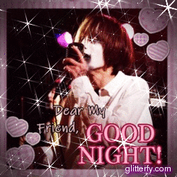 Samurai Newwave, a visual kei artist, sings into a microphone with a 'Dear My Friend, Good Night!' message.