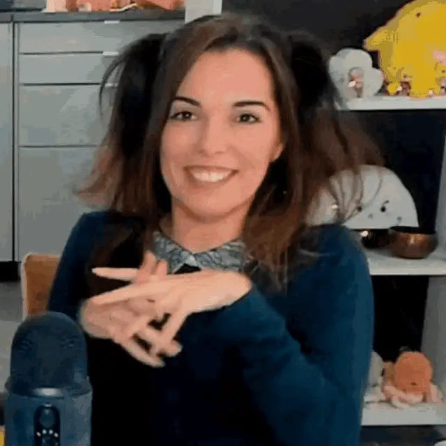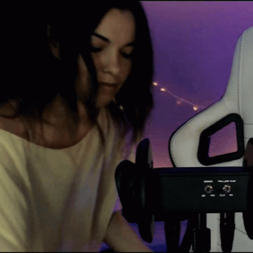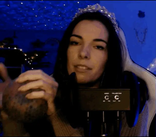 Woman with headphones opens and closes a small black case, creating soft ASMR sounds for relaxation.
