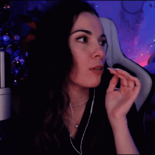 A woman wearing headphones reacts with surprise, then breaks into a wide smile and laughter.