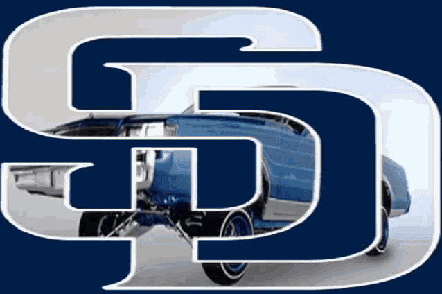 A classic blue lowrider car in San Diego, California, showcasing its hydraulic suspension with impressive hopping.