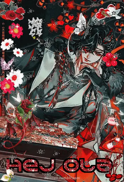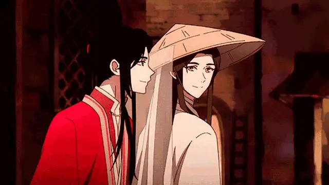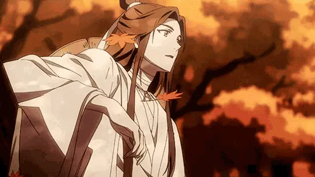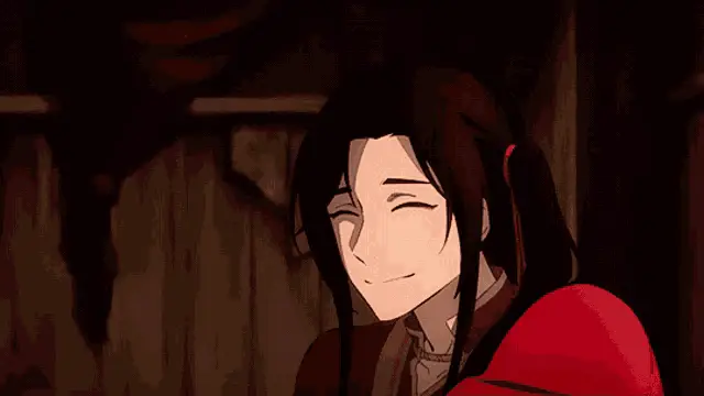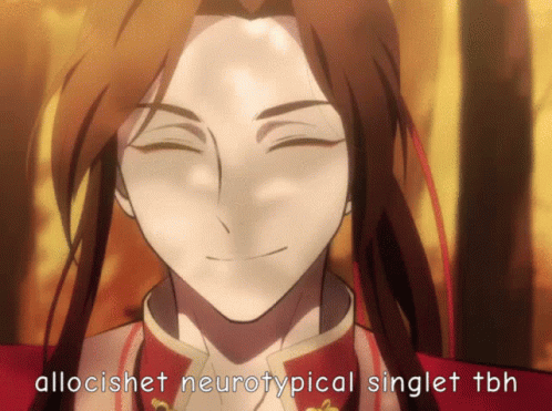 San Lang (Hua Cheng) from Tgcf smiles in this anime-style image with the caption 'allocishet neurotypical singlet tbh'.