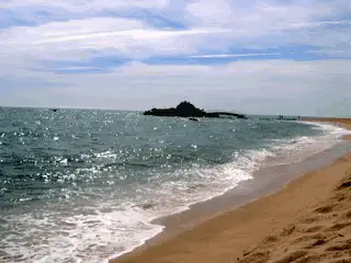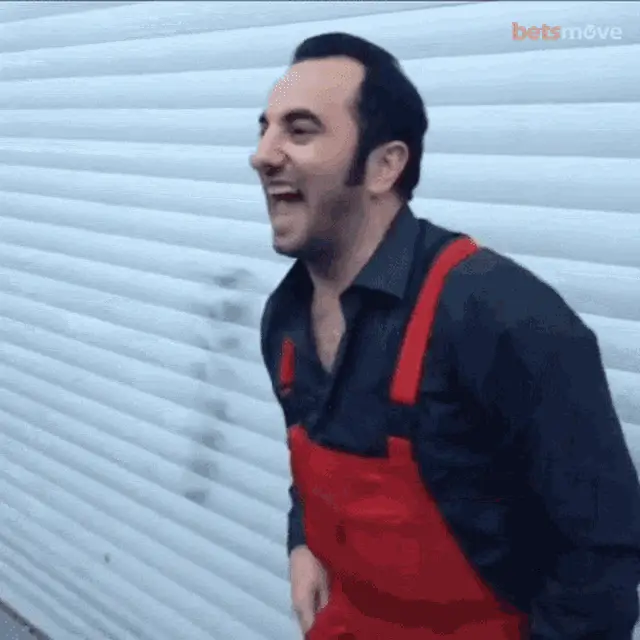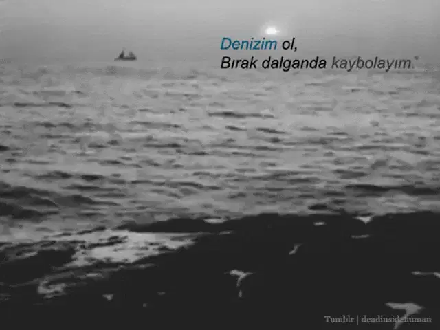 A cartoon man with a beard sits in a small wooden boat on purple wavy water, hugging his knees.