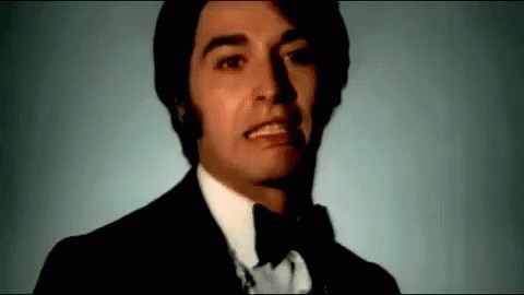 Iconic Argentine singer Sandro De America, also known as Roberto Sánchez, looks directly at the camera in a classic tuxedo.