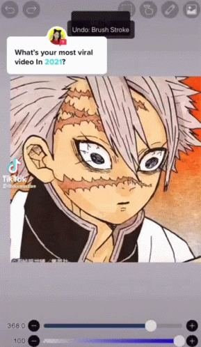 A speedpaint of Sanemi Shinazugawa from Demon Slayer, followed by a humorous Sun-Maid Raisins meme in response to a viral video question.