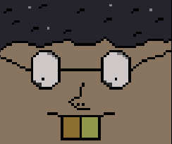 Pixel art drawing of a person named Sanya Aleksandr, depicted with glasses and a mustache.