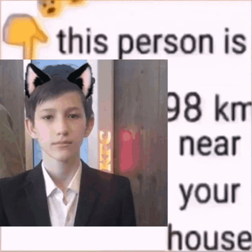 саня саня-риис with cat ears, as the meme text counts down to 0 km near your house.