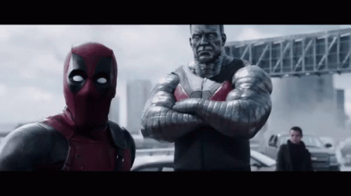 Deadpool panics while Colossus tries to calm him down, with captions 'Emak!!!' and 'Sans Vrooo'.