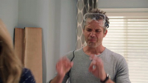 Joel Hammond from Santa Clarita Diet makes an 'OK' sign with 'PERFECT' text, wearing goggles.