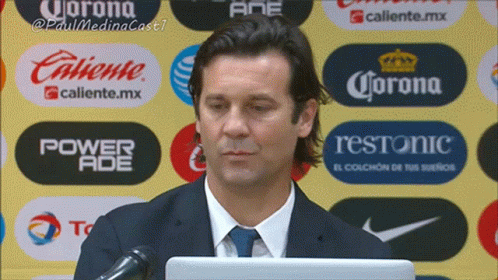 Football manager Santiago Solari says "Excuse me, thank you!" before leaving a press conference.