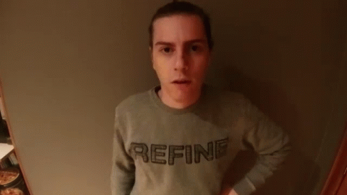 B00mzer shows a surprised then annoyed expression, wearing a grey 'REFINE' sweatshirt.