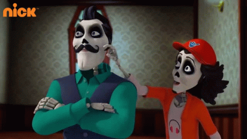 Bhoot Bandus character Sparsh, a happy skeleton, playfully touches Col Suri's mustache.