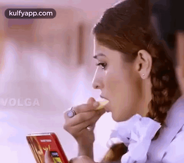 Lakshmi Rai enjoys a biscuit while looking at her phone, from the Sowkarpetta movie.