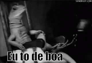 A black and white video of a lizard sitting on a chair with the Portuguese caption "Eu to de boa" (I'm chill).