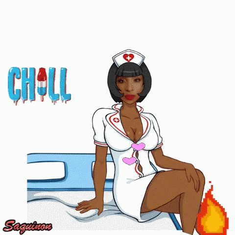 Saquinon Lehie, the animated nurse, sits on a bed asking 'How's It Going?' with 'CHILL' text.