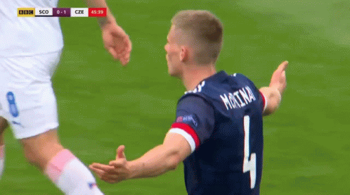Scott McTominay, wearing his Scotland jersey, reacts with frustration during a match against the Czech Republic.