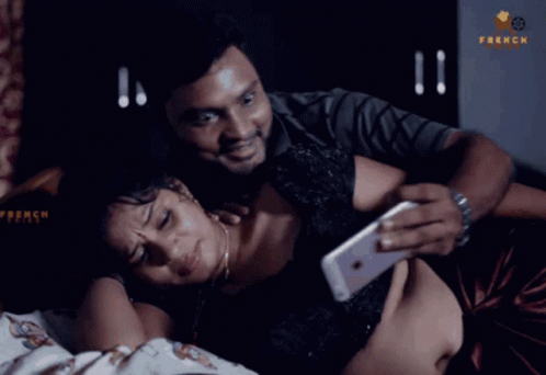 A man and woman share a moment of saree love and romance on a bed, captured by Sareefans.