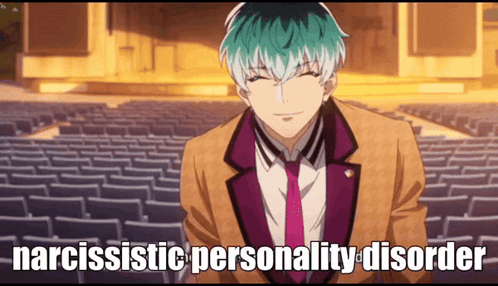a man in a suit and tie with narcissistic personality disorder written on the bottom