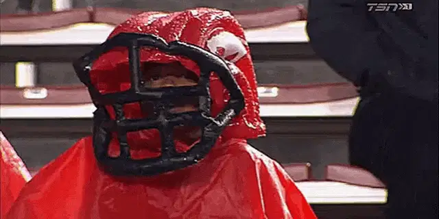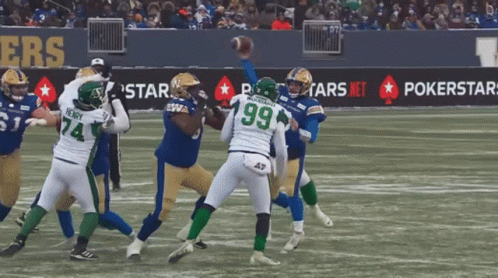 Nigel Harris of the Saskatchewan Roughriders makes a crucial interception during a snowy Canadian Football League game.