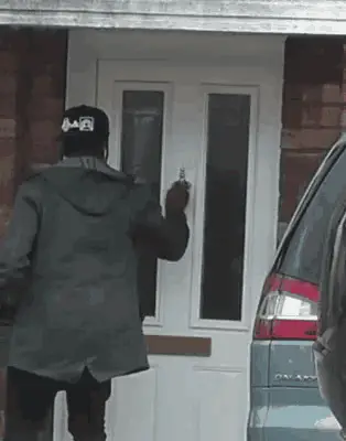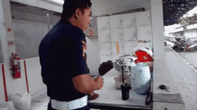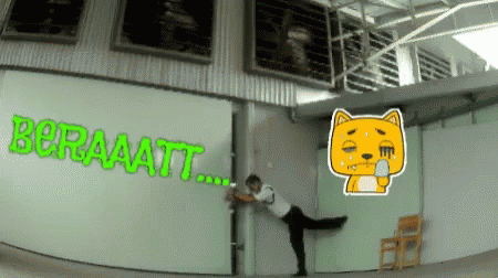 A security guard struggles to push a heavy object or door, indicated by the text 'BERAAATT'.