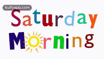 A vibrant graphic displaying 'Saturday Morning' in colorful letters with a bright sun illustration.