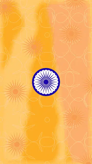 A vibrant kite in the colors of the Indian flag, featuring the Ashoka Chakra, flies against a clear blue sky.