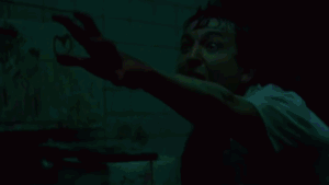 Adam Stanheight, covered in blood, desperately reaches out in the dark, confined setting of Saw 2004.