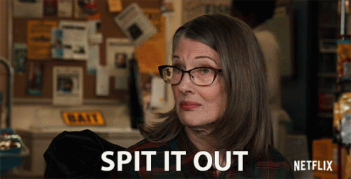 Annette O'Toole, as Hope McCrea from Virgin River, says 'Spit It Out' in a Netflix clip.