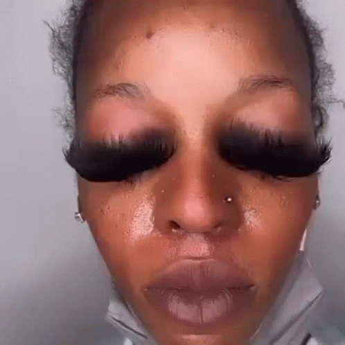 Sazzybarb shows off her incredibly big eyelashes while blinking, featuring a nose ring and face mask.