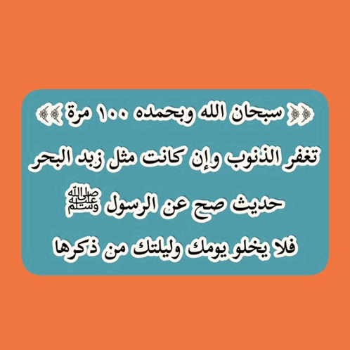 A religious reminder in Arabic about the virtues of saying 'Subhanallah wa bihamdihi' 100 times for forgiveness.