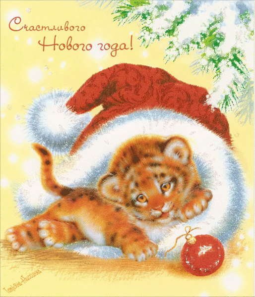 «Счастливого нового года!» открытка с тигрёнком