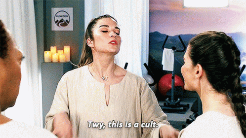 Alexis Rose tells Twy, 'This is a cult,' in a memorable scene from Schitt's Creek.