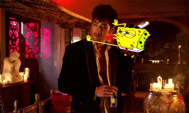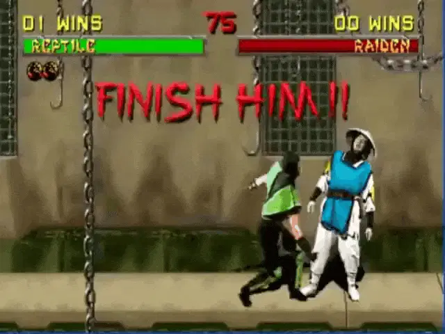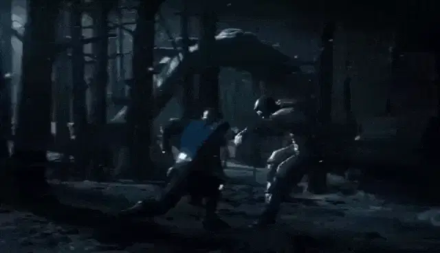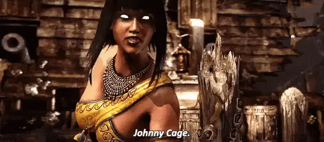 Scorpion from Mortal Kombat performs a magic trick, pulling a cat out of his hand in a forest setting.