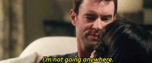 Scott Foley embraces a woman, reassuring her with the words, "I'm not going anywhere."