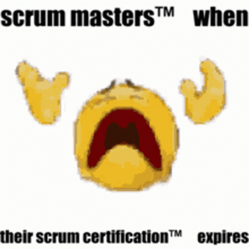 A meme depicting scrum masters' reaction when their scrum certification expires, showing a melting face.
