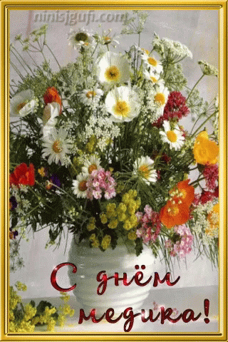 A vibrant bouquet of wildflowers in a vase, celebrating Medical Worker's Day with a festive greeting.