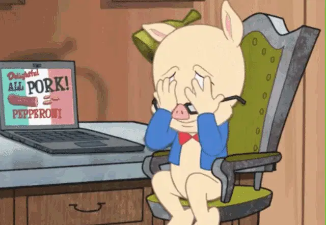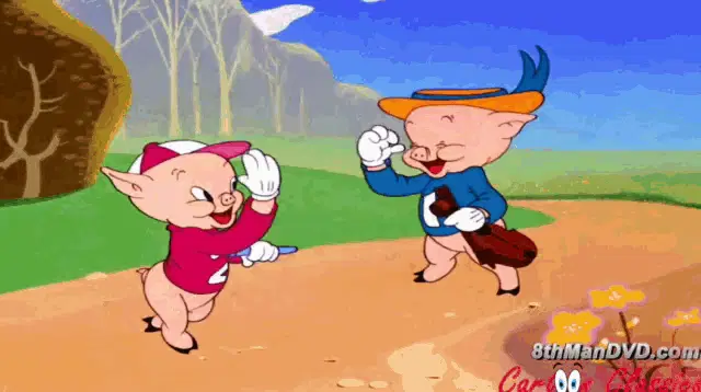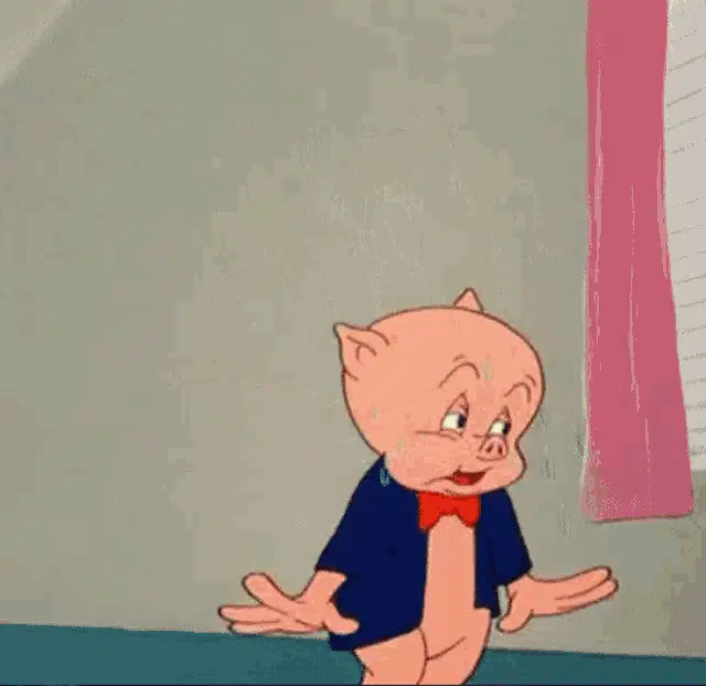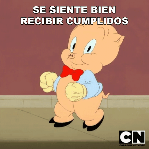 Porky Pig from Looney Tunes happily states, 'It feels good to receive compliments,' with the Cartoon Network logo.