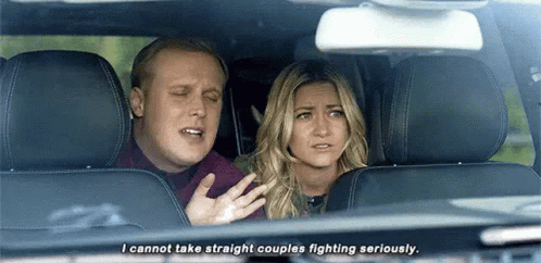 Elliott Goss tells Portia Davenport he can't take straight couples fighting seriously in Search Party.