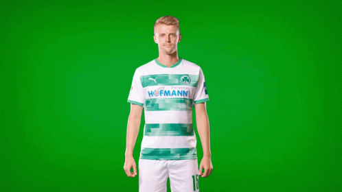 Sebastian Ernst, a footballer for SpVgg Greuther Fürth, shows off his number 15 jersey.