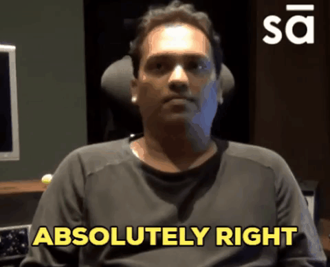 Seby Saby, a sound engineer, emphatically states 'absolutely right' in an interview setting.