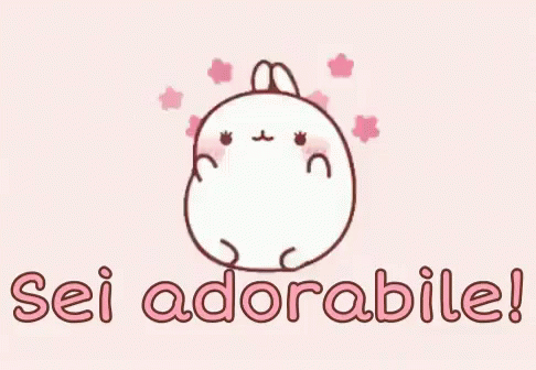 A cute cartoon rabbit with pink cheeks and stars, accompanied by the Italian phrase 'Sei adorabile!' meaning 'You are adorable!'