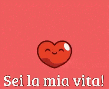 An animated red heart with a smiling face pulses, displaying the Italian phrase 'Sei la mia vita!' (You are my life!).