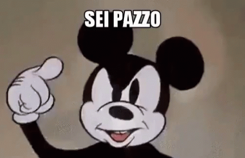 Mickey Mouse (Topolino) points at the camera and gives a thumbs up, embodying the 'You're Crazy' sentiment.