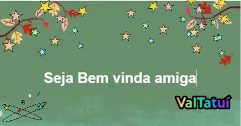 Animated welcome message for a friend, featuring colorful stars and the name ValTatuí.